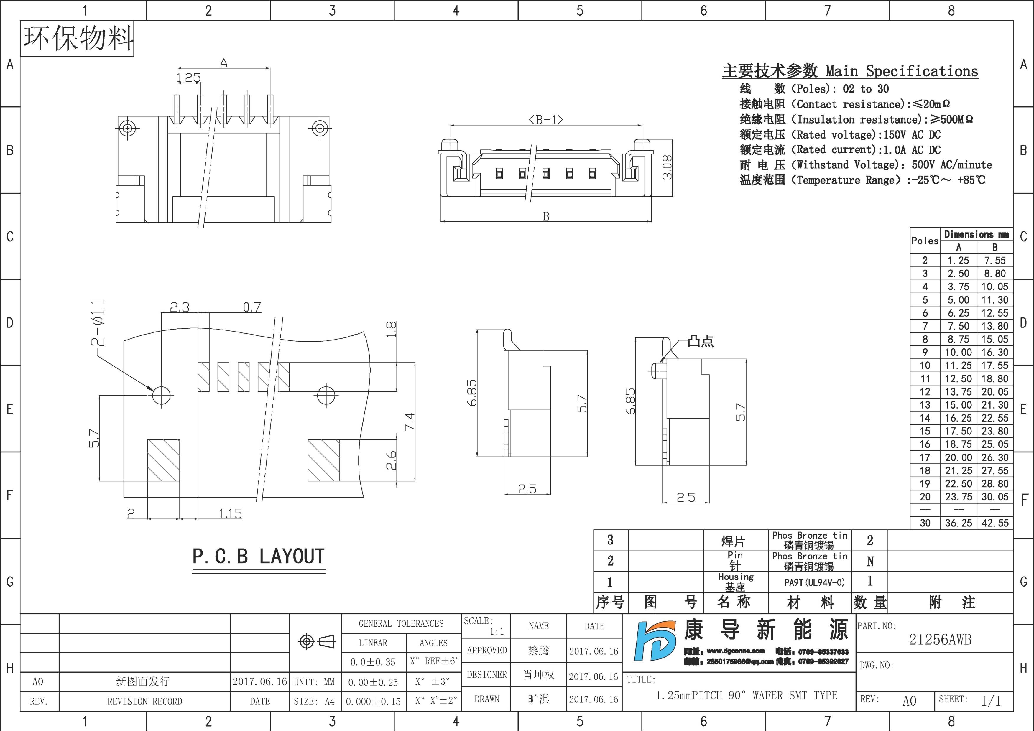 Spec:1.25mm PITCH 90° WAFER SMT TYPE