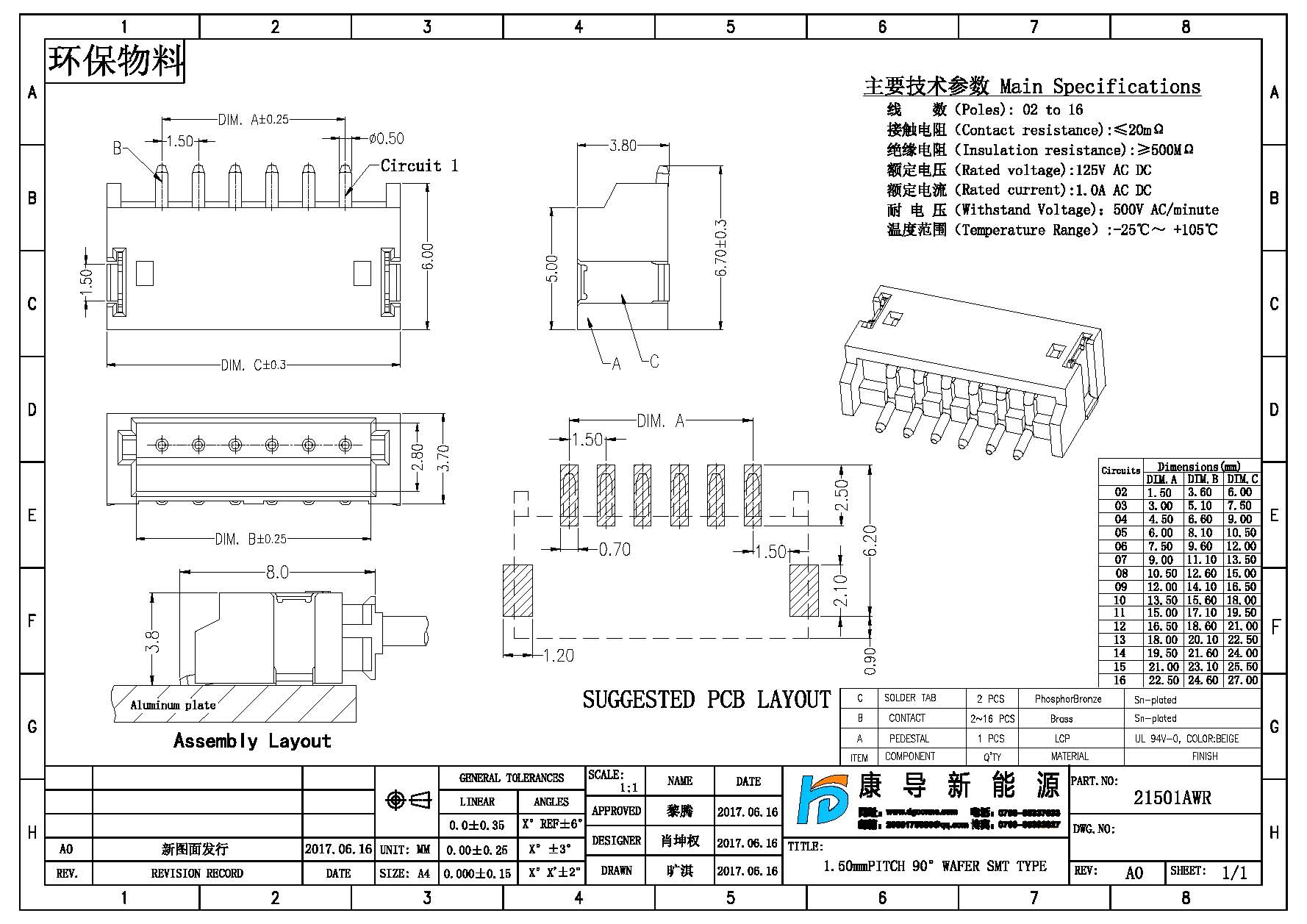 Spec:1.50mm PITCH 90° WAFER SMT TYPE