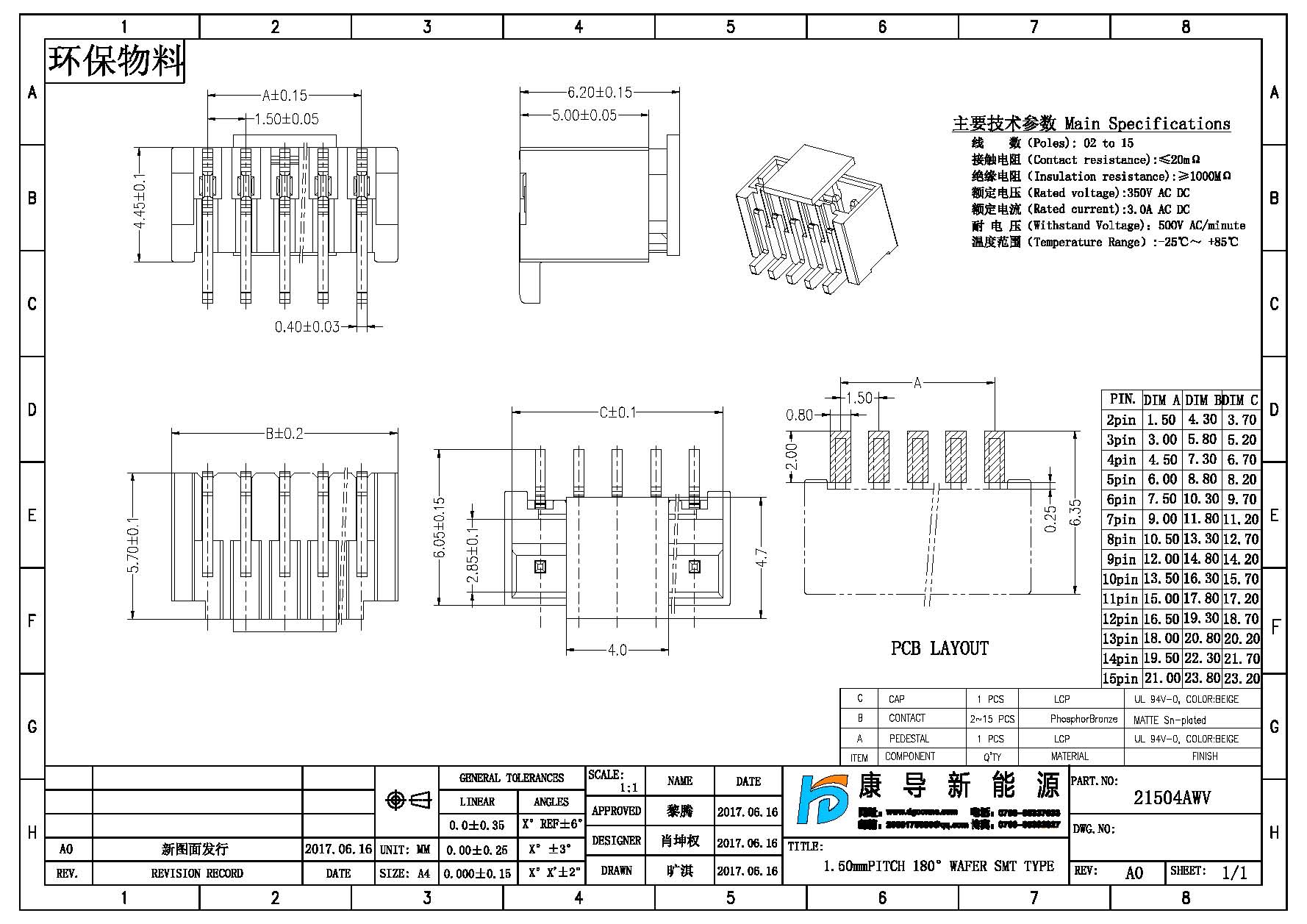 Spec:1.50mm PITCH 180° WAFER SMT TYPE