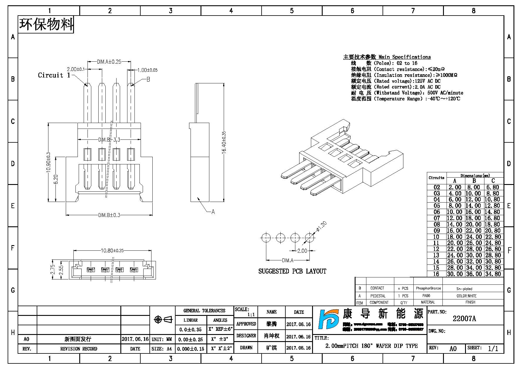 Spec:2.00mm PITCH 180° WAFER DIP TYPE