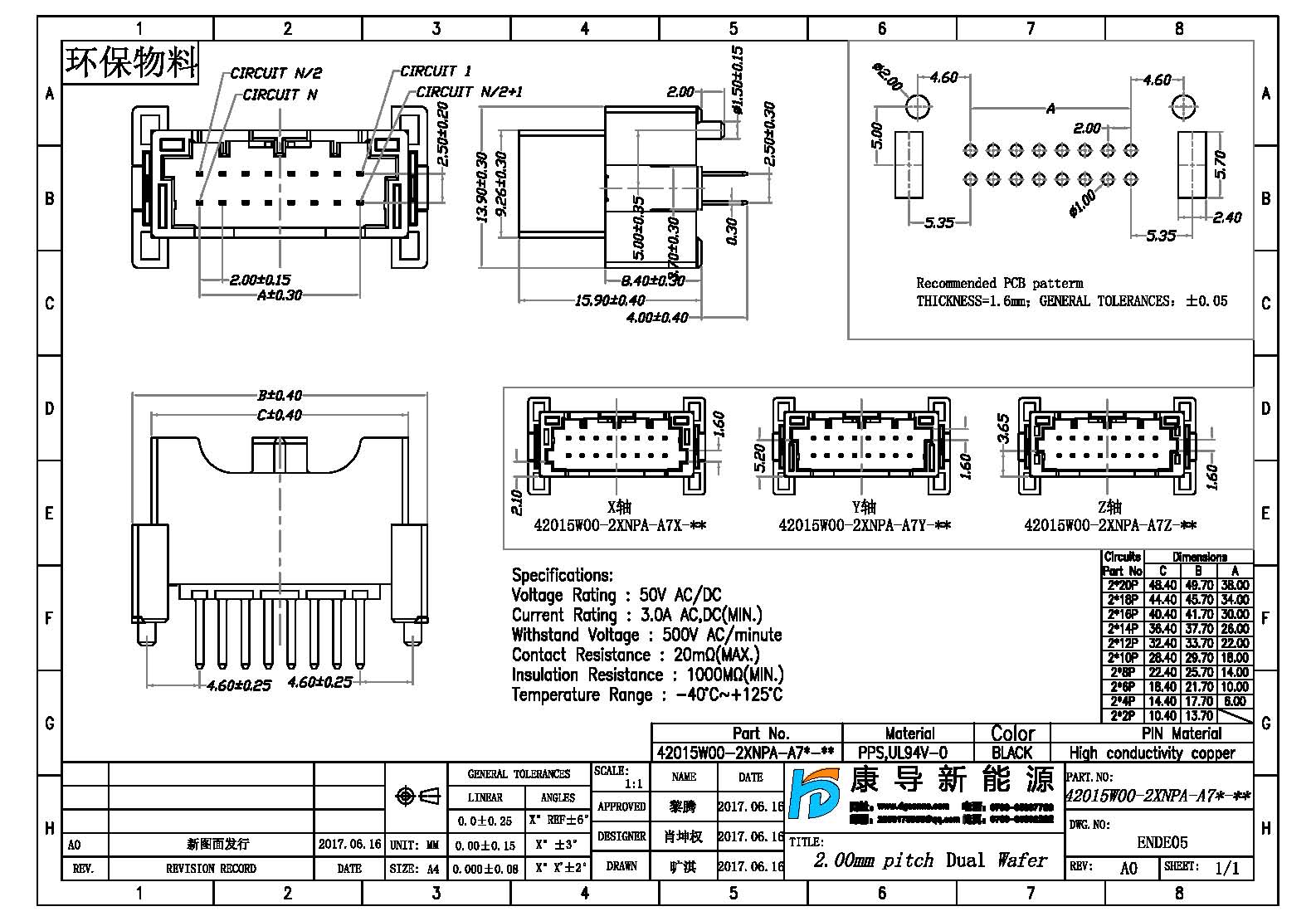 Spec:2.0mm PITCH 180° Dual WAFER DIP TYPE